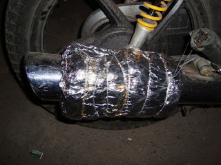 Miếng thịt bọc trong lớp giấy bạc và cuốn quanh ống bô xe máy sẽ từ từ dậy mùi thơm trên mỗi chặng đường đi.